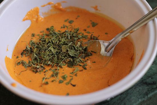 1. Combine everything into the blender except kasuri methi and chat masala. Blend into a smooth paste.