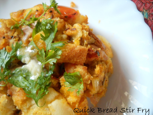 You could make this Quick Bread Stir Fry with brown bread. To make more healthy add veggies like boiled carrots, onion and garlic. Just ensure the Quick Bread Stir Fry doesn’t becomes mushy. This will taste great if the bread is on the crispier side.