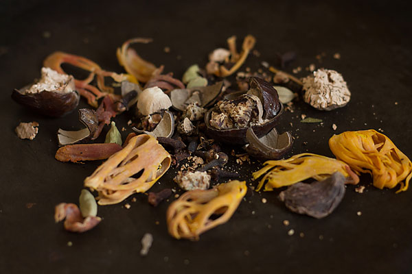 12. Saute 3 Bay leaves, shahi jeera, rest of cloves, peppercorn, cinnamon and green cardamom.
