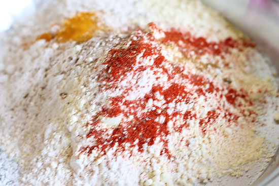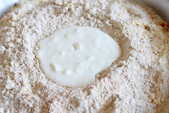 - Allow them to cool meanwhile let’s start making our dough. Combine wheat flour, gram flour and salt. Mix them nicely.