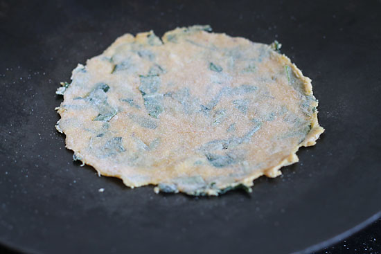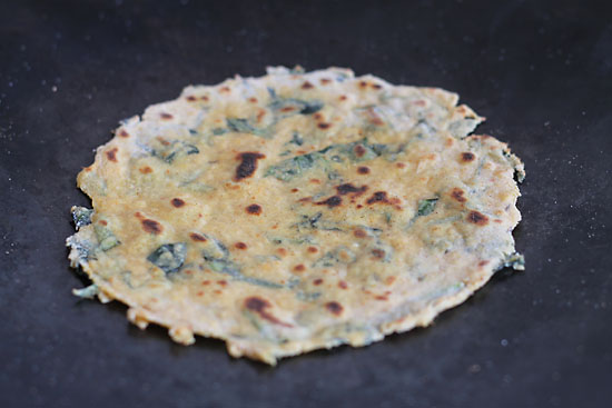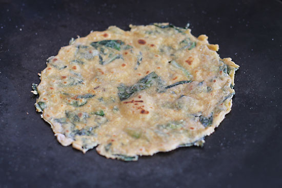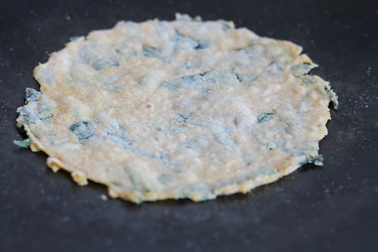 - Heat the pan or tawa. Place the flat bread or theplas over the tawa.