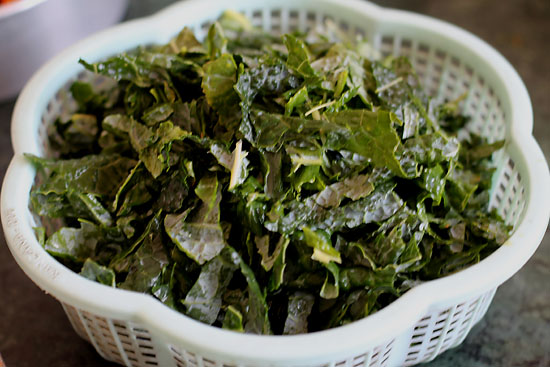 1. Firstly rinse kale leaves under running tap water. Wipe them with a cloth to remove moisture.