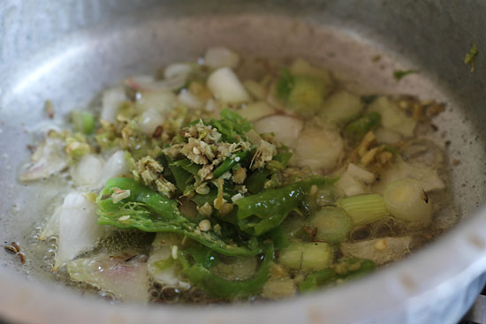 - Add ginger-chili paste. Saute until the raw smell from the ginger disappears.