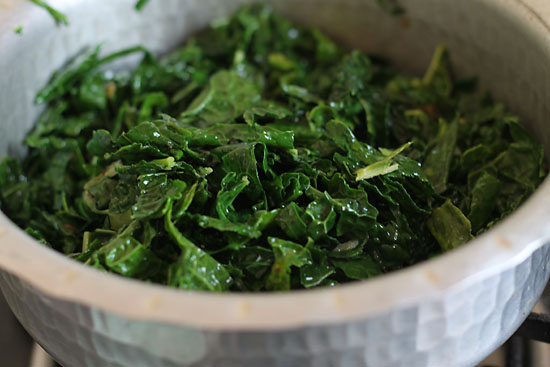10. Cover the the kale leaves with a lid consisting water. Cook until they soften and changes texture. Keep stirring in between.