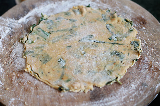 17. Dust some flour and roll them thin with a roller into oval or round shape.
