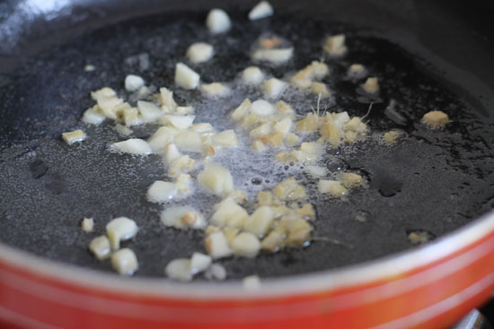 - Take another pan add oil or butter. Saute chopped garlic and ginger for 1-2 mins.